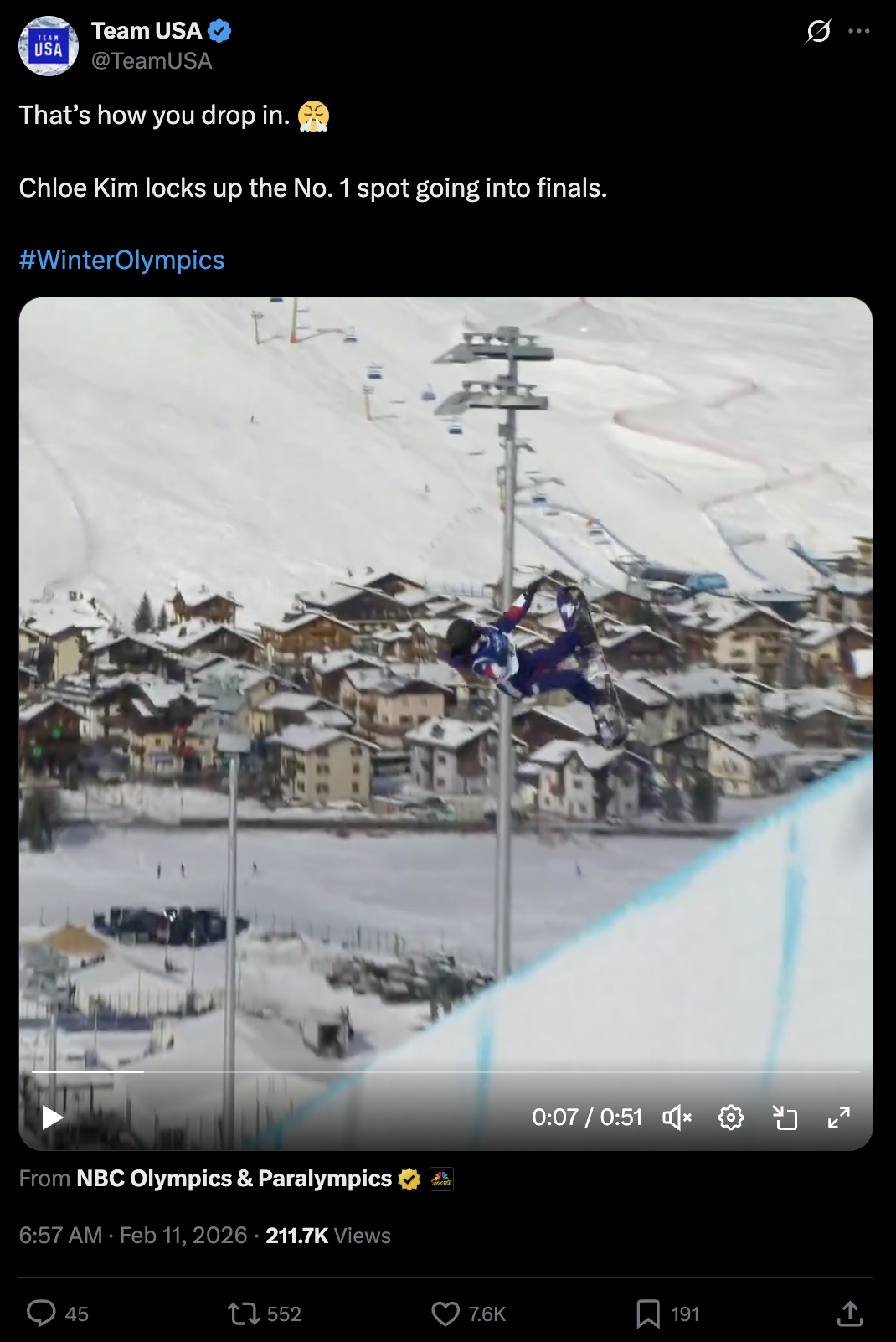 - 1:30 p.m. ET: Women's halfpipe snowboard final (NBC) MEDAL π