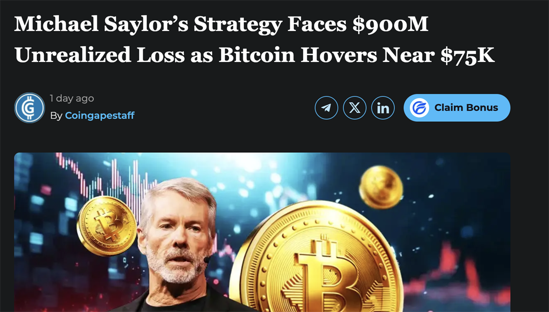 For the first time since 2023, Michael Saylor's entire position went underwater.